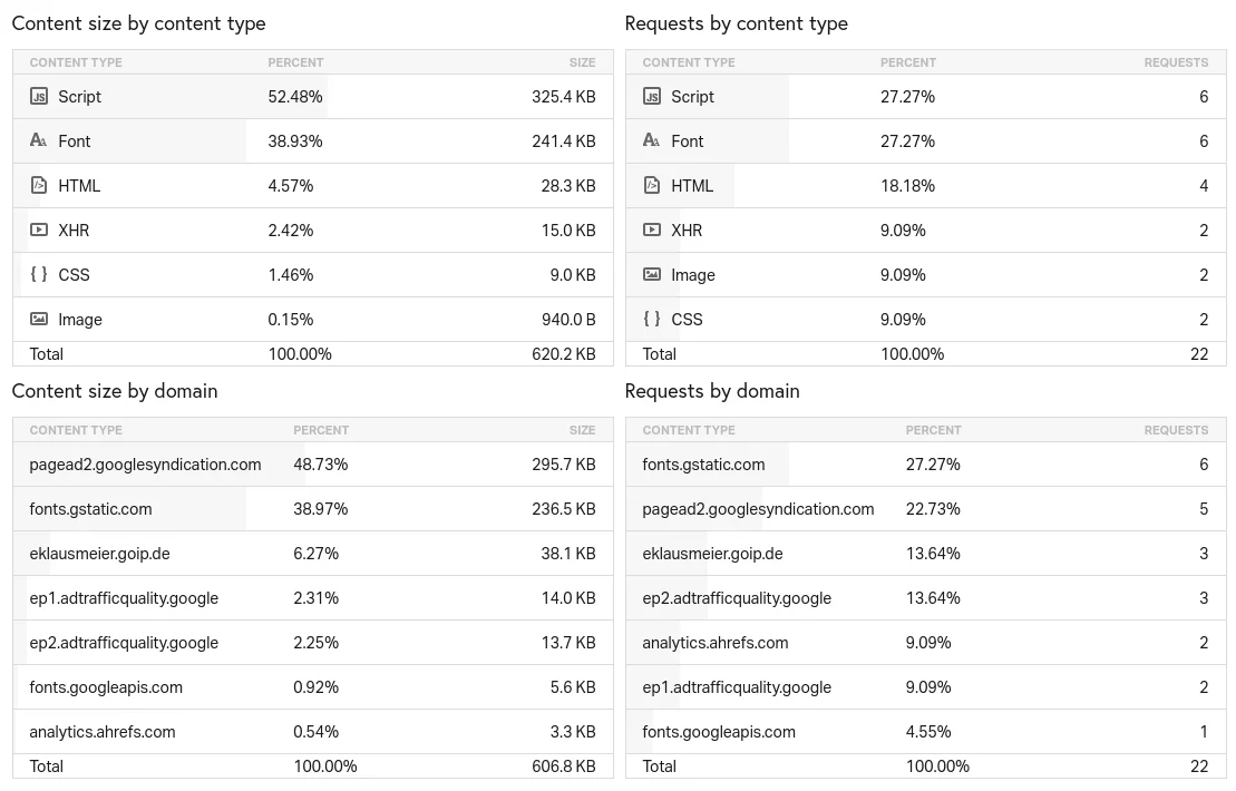 1. Page size more than doubles with ads